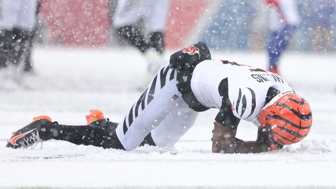 The sixth-year wide receiver took a couple of hard falls on a cold and snowy day at Buffalo's Highmark Stadium. Higgins lobbied to stay in the game and indicated that he was OK to play. However, that changed hours later. Taylor said that Sunday night and Monday morning, Higgins said he was experiencing symptoms.