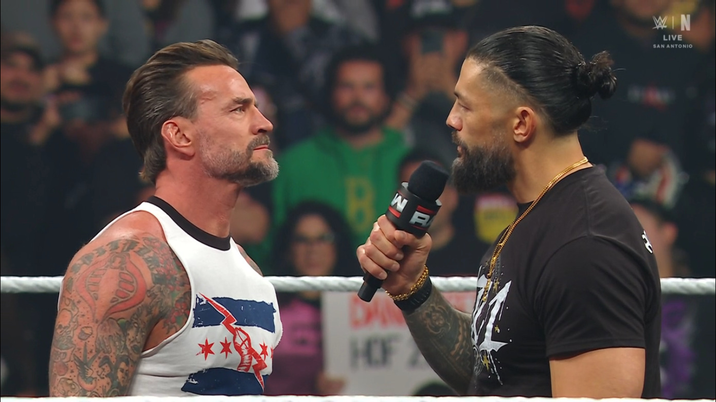 CM Punk punched Roman Reigns and dropped him to close WWE Monday Night Raw after the two World Heavyweight Championship rivals exchanged personal verbal shots in the main event segment, with Reigns bringing up Punks wife and Punk calling Reigns chicken s**t for sending the Usos after him instead of doing it himself. Reigns came []